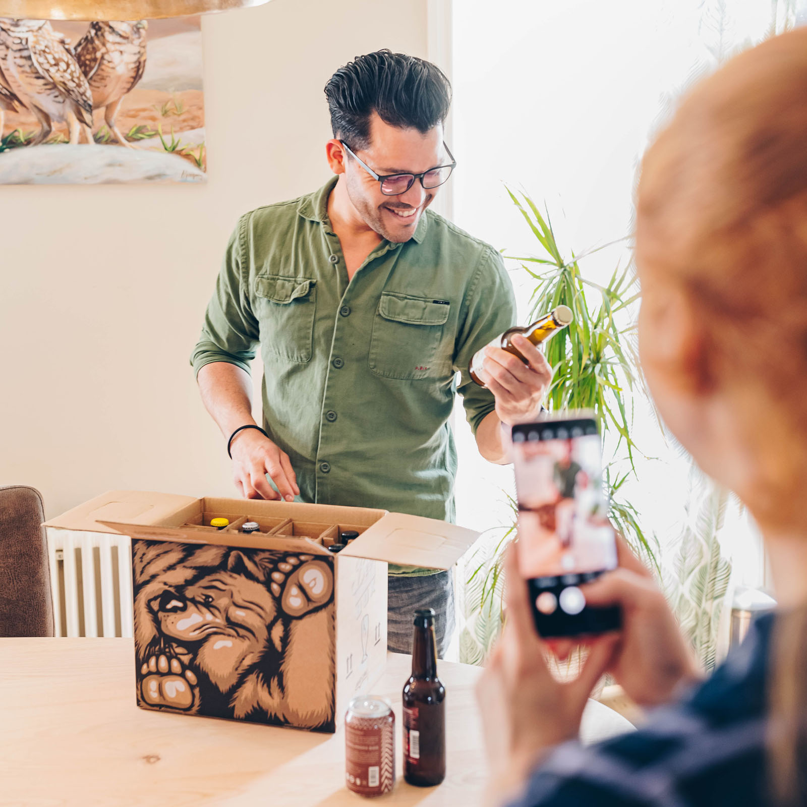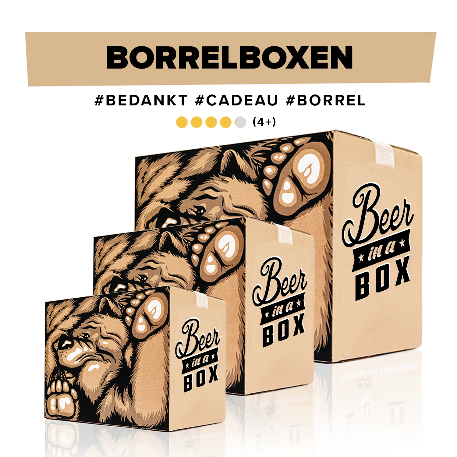 Verras je collega’s, klanten of relaties met een uniek borrelmoment in een box. Stel zelf pakketten samen en bepaal wie wat krijgt. Speciaalbier, wijn, sap (0.0%), hapjes en een (persoonlijke) boodschap.